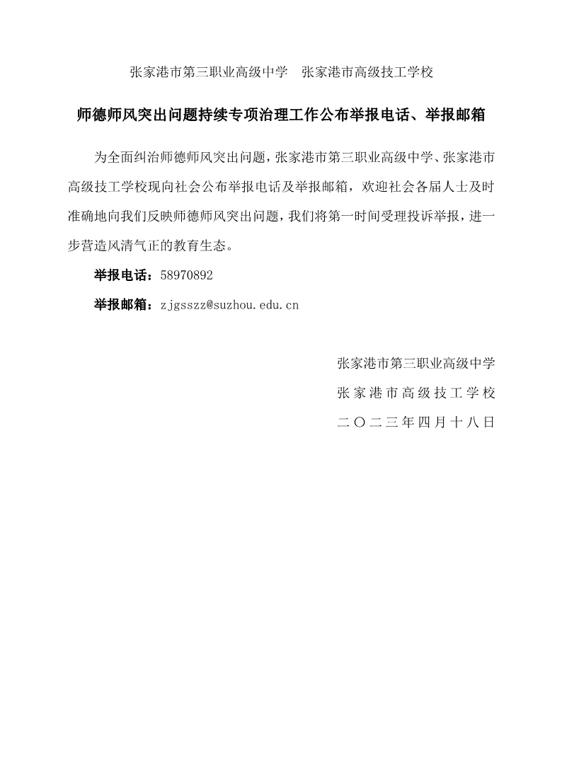 师德师风突出问题持续专项治理工作公布举报电话、举报邮箱(2023年)